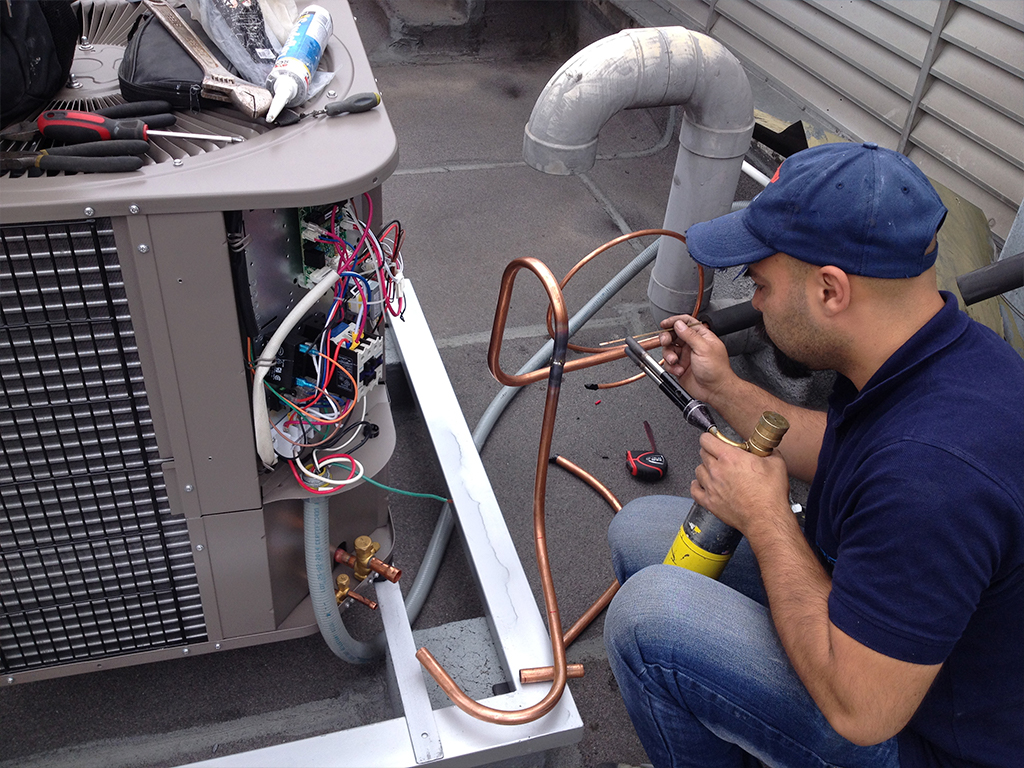 Equipo de trabajo realizando instalaciones en edificios residenciales